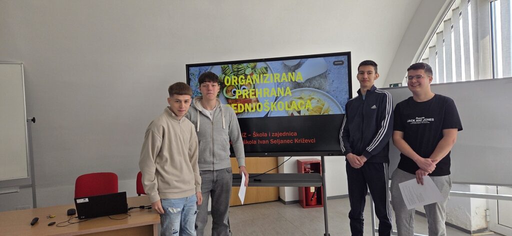 Danas je u Srednjoj školi “Ivan Seljanec” Križevci održana panel rasprava na temu prehrane srednjoškolaca i to u okviru fakultativnog predmeta Škola i zajednica (ŠIZ). Samu panel raspravu kojoj su publika bili učenici, pripremili su i organizirali te vodili upravo učenici koji su ovaj problem zdrave prehrane srednjoškolaca odredili kao problem kojeg će na ŠIZ-u istražiti, proučiti i predložiti rješenja.
